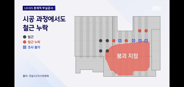 게다가 시공사인 GS건설은 그나마도 부실한 설계대로 시공하지 않고 철근을 추가로 누락한 데다, 기준에 미치지 못하는 저강도 콘크리트를 사용해 부실을 더 키운 상황입니다.
